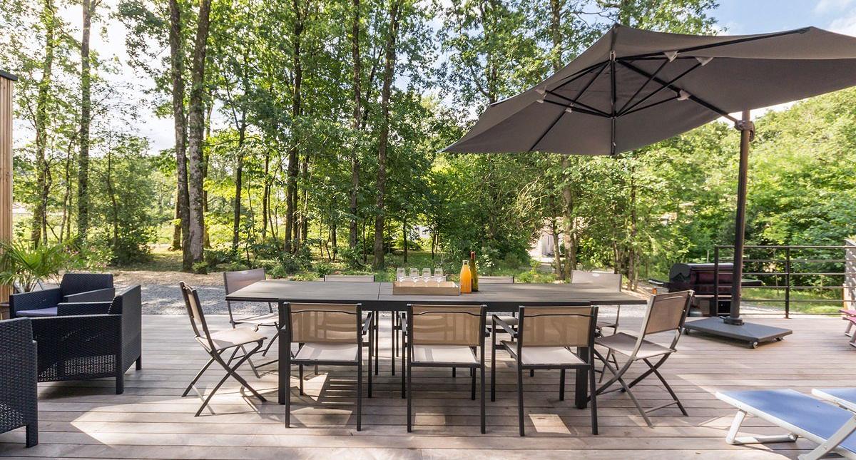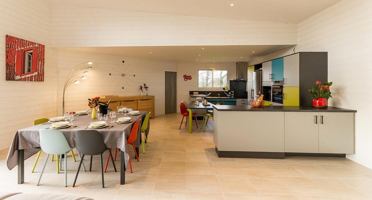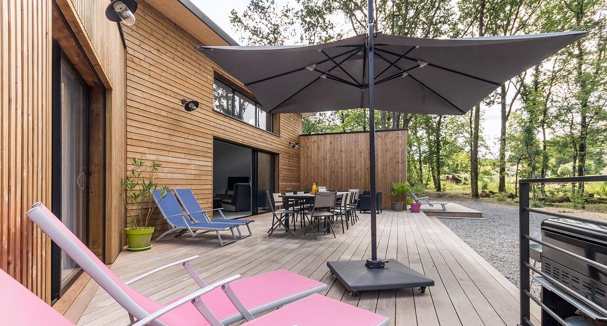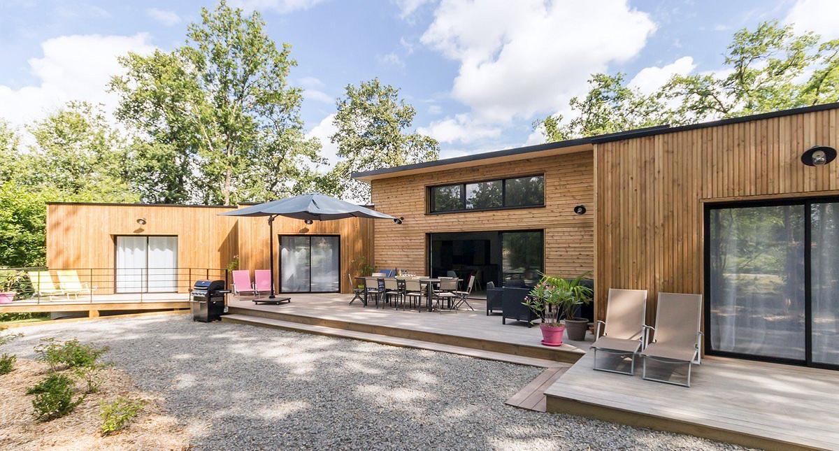 La Bruyère est une grande maison neuve contemporaine tout en bois, indépendante, située à la campagne entre Nantes et Pornic (25 km), nichée au cœur d'un parc arboré non-clos de 2000 m² avec grande terrasse en bois. Terrain de boules, jeux pour enfants (palet, passe-trappe) et ping-pong à dispo. Garage fermé avec grand frigo supplémentaire. Plain-pied (accessible PMR): vaste pièce de vie (77 m²) avec grandes baies vitrées (sud) comprenant salon/ séjour et cuisine aménagée ouverte, cellier, 4 chambres de 2 ou 3 lits 90x200 jumelables (2 chambres avec s.d.e privative, 2 chambres avec cabinet de toilette), 1 douche indépendante. et 3 WC indépendants. Equipements supplémentaires : Wifi, TV écran plat, lecteur DVD, sèche-linge, équipement bébé. Compris: chauffage géothermie, électricité, draps. Non-compris: linge de toilette, forfait ménage (95€) et taxe de séjour (0,88€/j./p.). Courts séjours sur demande;à partir de 700€ les 2 nuits; contacter les propriétaires. Possibilité d'une chambre supplémentaire avec une sortie indépendante, wc et douche chez le propriétaire. Borne électrique à disposition.